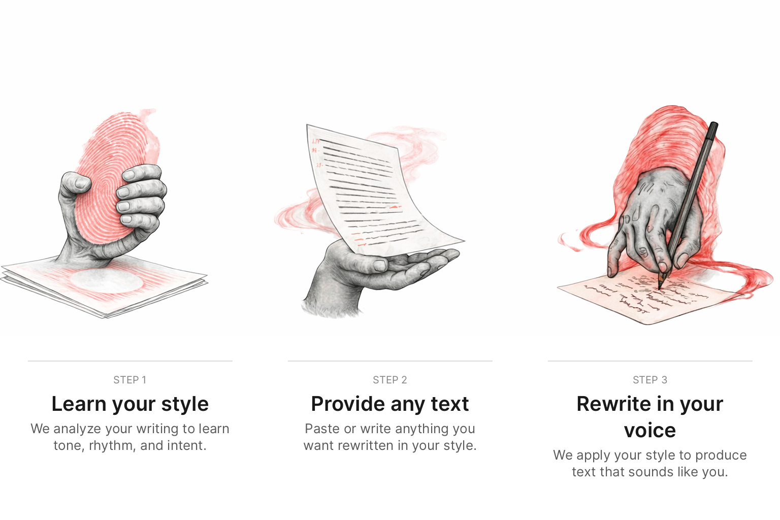 Thingy learns your writing style and can adapt emails, essays, posts, and other text to match your voice. Simply provide the content you want to rewrite, and Thingy will transform it to match your style.